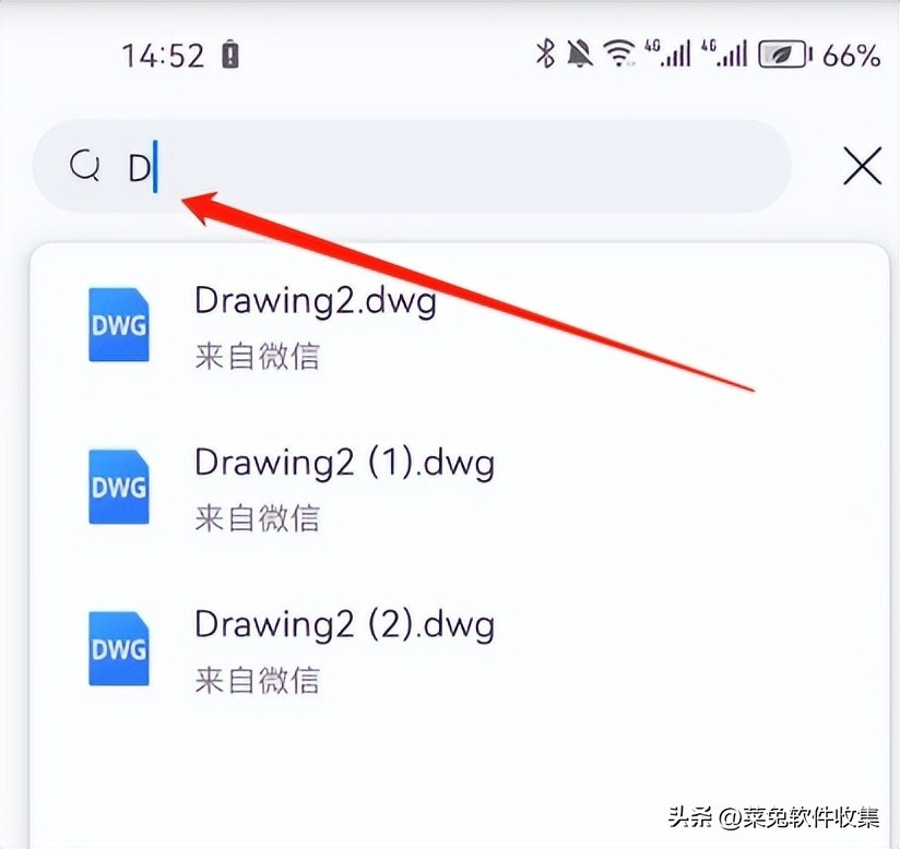 在搜索的上方输入文件名搜索,一般输入前面一两个字,就能看到了文件了,点击文件名,就能在手机上打开DWG文件了。