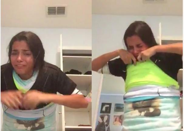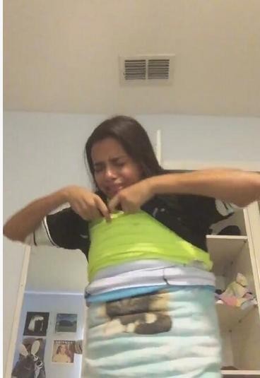 “100层挑战”持续发酵,继有人挑战过底妆、指甲油、睫毛膏,状况惨不忍睹,现在外国有位年轻正妹穿上“100件衣服”,结果却无法脱下,更让她快呼吸不过来,她把这段崩溃的过程录下并警告大家:“千万别尝试,否则你会死掉!”