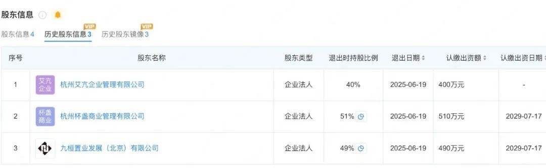 6月19日,王思聪持股的杭州艾亢企业管理有限公司和杭州杯盏商业管理有限公司退出寰聚商业股东