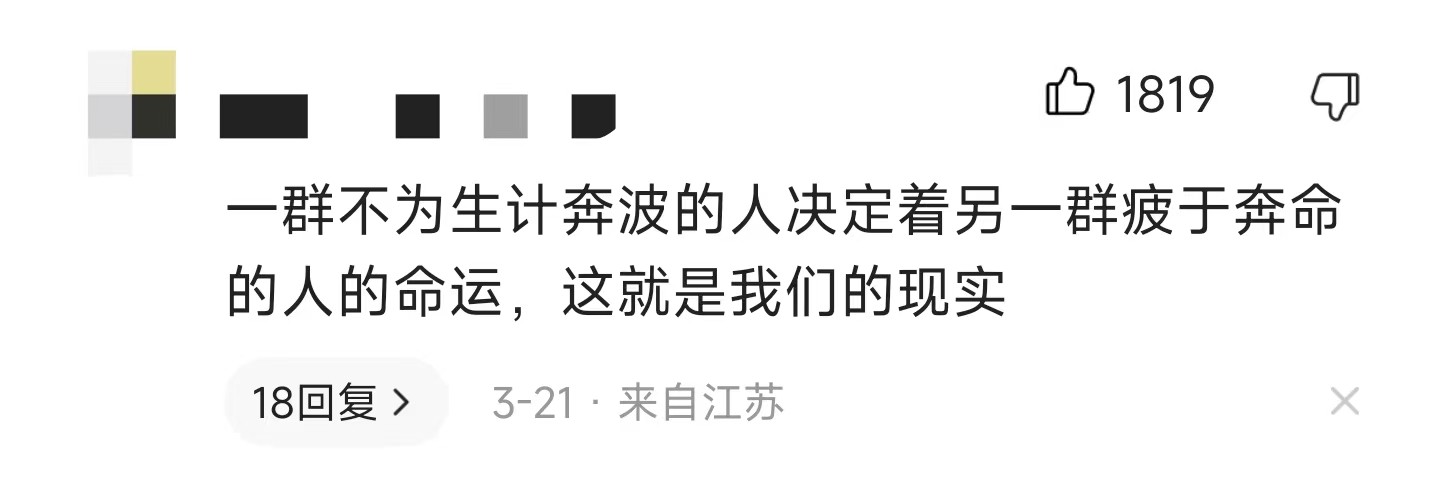 他也许没看到过,有多少家庭是掏空了三代人的积蓄才能买得起一套房子,他们已经被生活压弯了身子,如今却被质疑“不努力,没压力”。