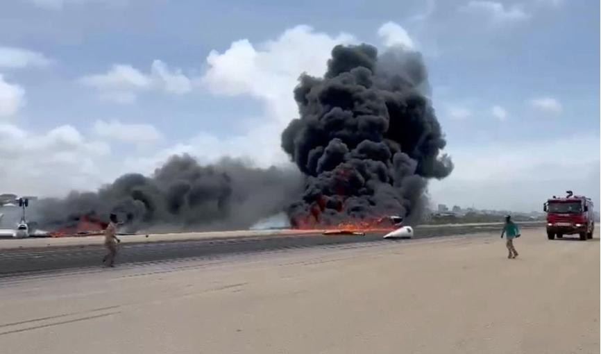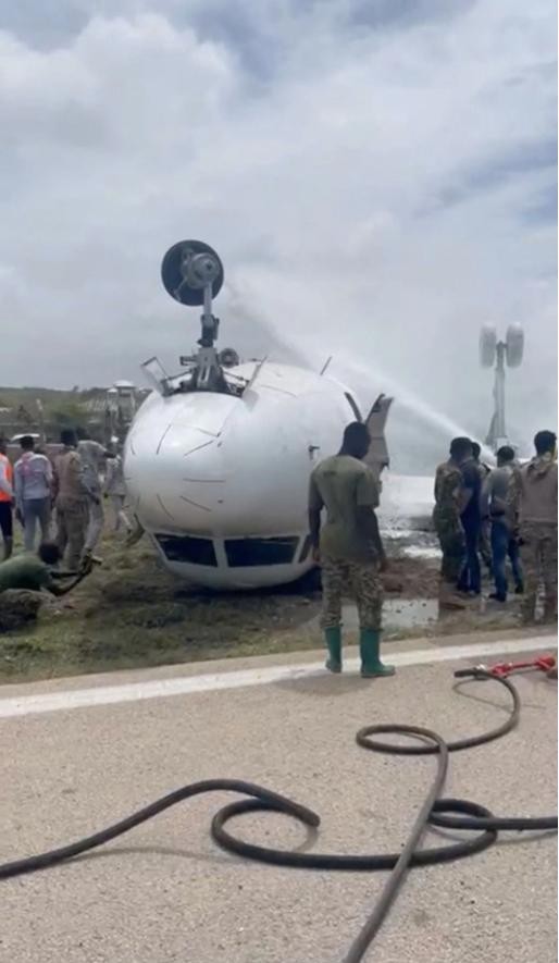 索马里一客机翻转坠落倒扣在地,浓烟滚滚,机上36人全部生还