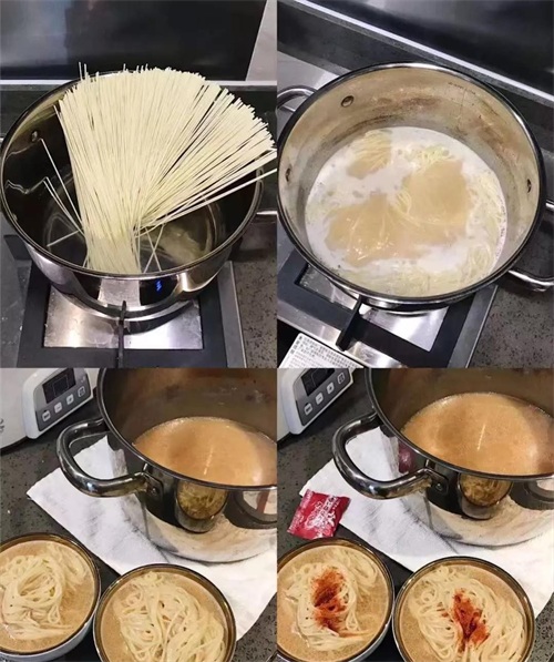 这是速食食品,方便快捷。有条件的,可以煮好开水,放排骨煮20分钟(可根据自己的爱好加料哈),再放面条煮2分钟即可,记得还要放调料哦!