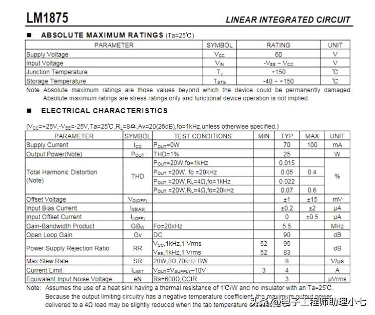 LM1875功放电气特性截图