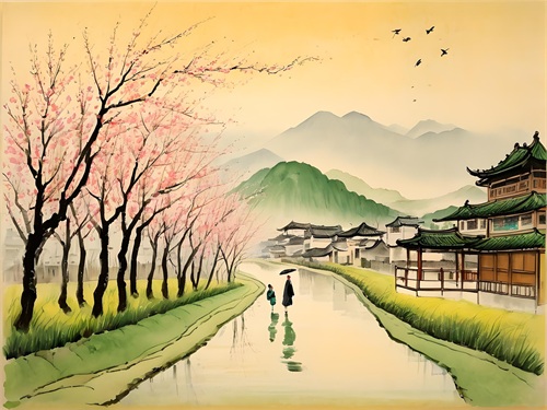 巧妙的问答结构:诗中的“借问酒家何处有,牧童遥指杏花村”采用了问答的形式,不仅推动了诗歌情节的发展,还巧妙地将读者的视角引向远方,增加了诗歌的空间感和想象空间。