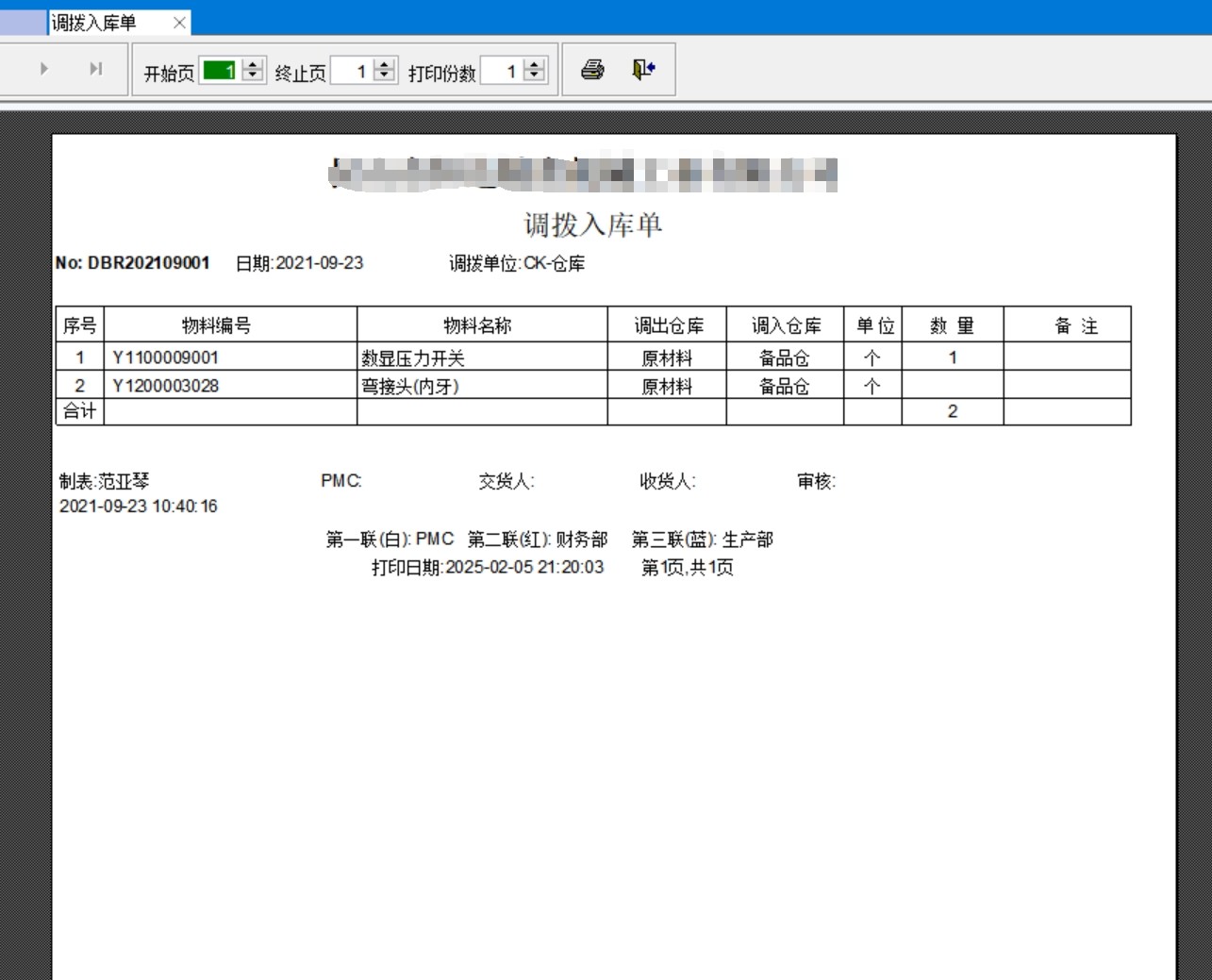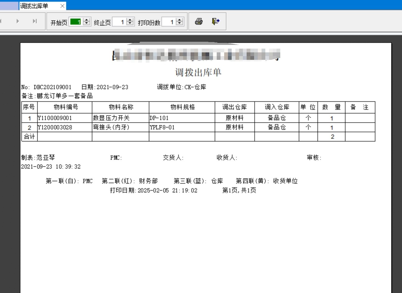 打印调拨单