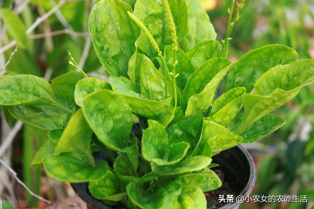 车前草是一种野菜,也是一种中药材,叶片近圆形,光滑,叶片洗干净之后绰水凉拌,清炒都很不错,整株都有药用价值,可以泡茶喝。
