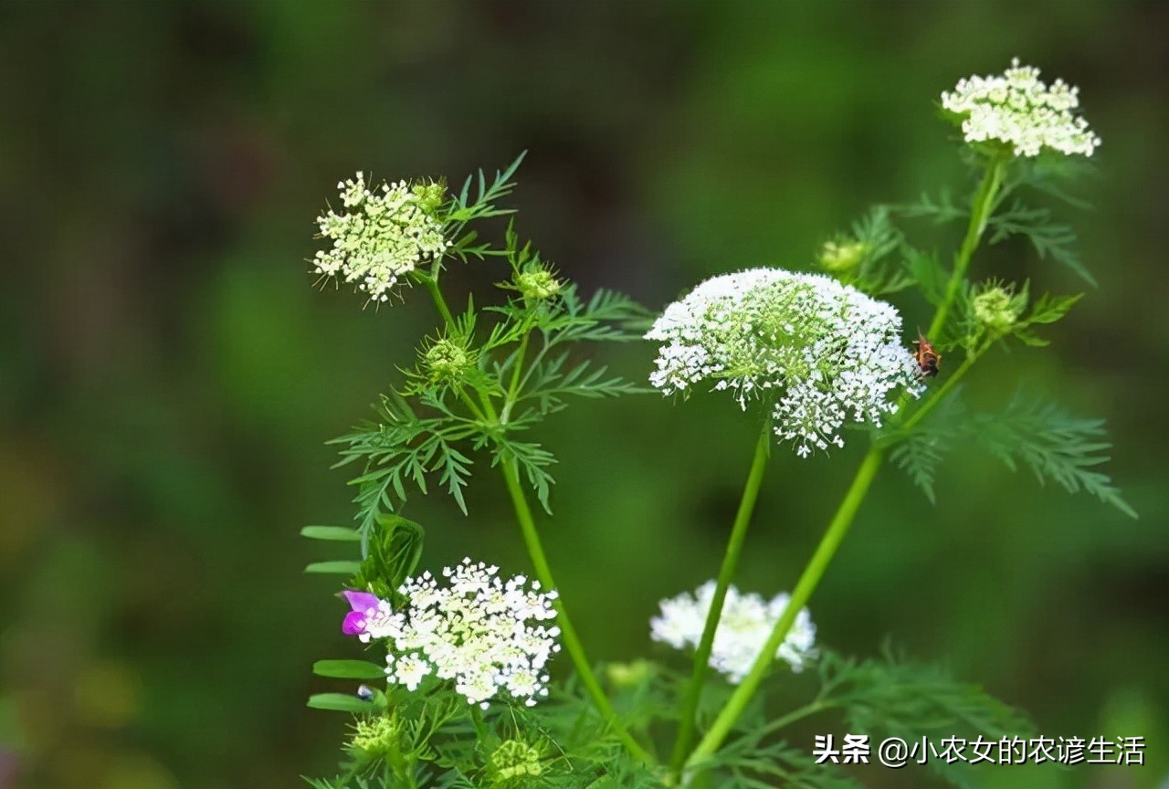 蛇床子的叶片和花朵和胡萝卜的很相似,所以又叫野胡萝卜,这种野草幼苗可以和肉一起炒着吃,也可以做成馅包饺子,包包子,还可以拌面蒸着吃。种子是一种中药材。