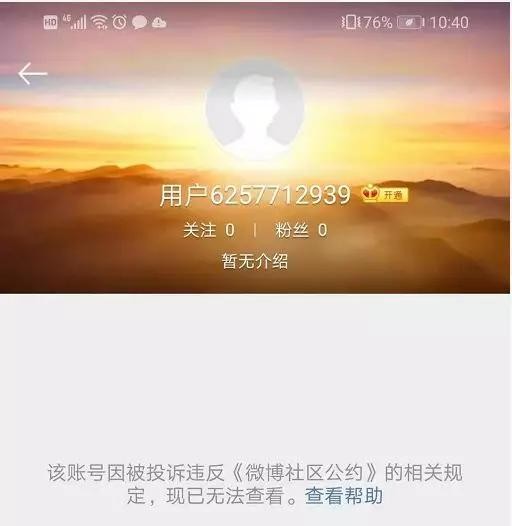 2019年12月21日晚7时,在记者发稿前,再次搜索“福建津深文化传媒有限公司”,发现认证为该公司的id只剩一个了,而@刘鑫6-6 和@冷眼萌叔 的主页也显示:“该账号因被投诉违反《微博社区公约》的相关规定,现已无法查看”。