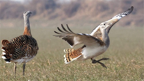 所以,在整场交配活动中,雌性大鸨始终占据主导地位,这也致使很多雄性大鸨为爱铤而走险。