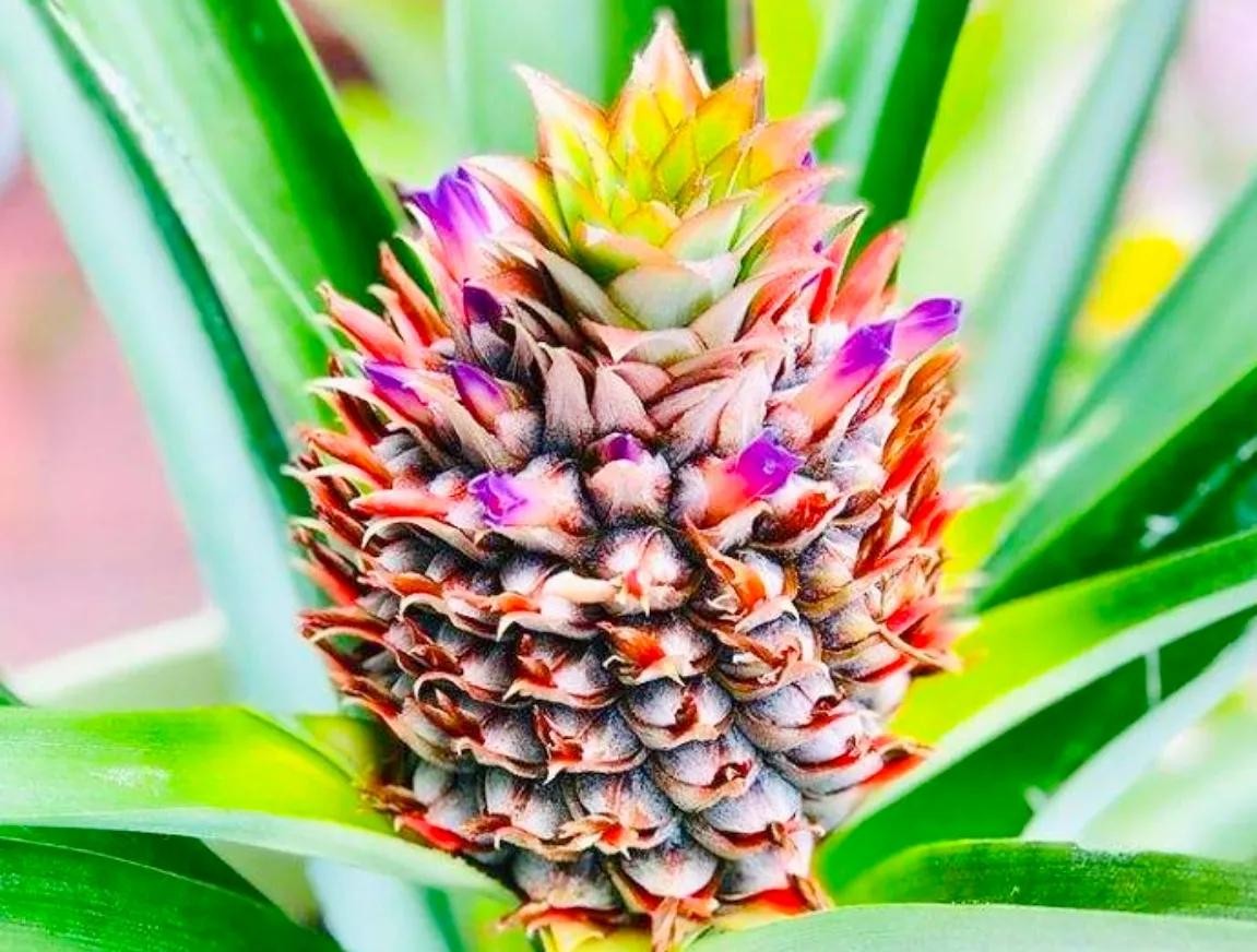 很多人以为菠萝不开花。实际上菠萝不但开花,而且开起花来还十分新鲜、漂亮,一行行紫红色的花朵排列有致。菠萝花就开在“菠萝”的外表层,我们食用的“菠萝果实”其实就是菠萝花的花序轴。广东徐闻是我国菠萝主产地,在那里可以看到“菠萝的海”。