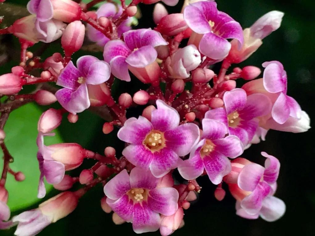 杨桃即阳桃或洋桃,是酢浆草科、阳桃属植物。花虽小,却有香气,数朵聚在一起,花瓣紫红色,边缘颜色渐浅,略向背面弯曲。我国东南部沿海地区及云南等地有栽培。
