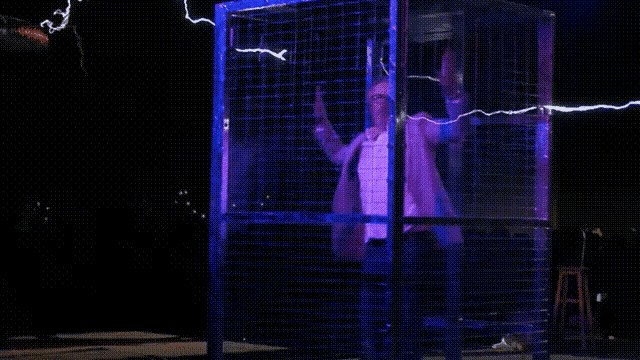 估计不少网友都看过一个实验,在一个大铁笼里站着一个人,用强大的静电去靠近铁笼,电流会击穿空气,然后发出蓝色的光和滋滋电流声打到铁笼上,但里面的人不会触电,这个装置就是法拉第笼。