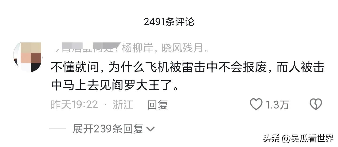 闪电发生时,雷暴雨云中的电场强度高达每米20000伏特以上,大家想象一下,20万安培的电流形成一条温度高达1.5万~2万摄氏的狭长区域,对飞机影响还是大的。