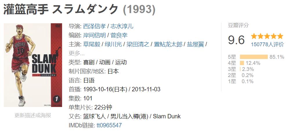 《灌篮高手》漫画销量突破一亿册,是日本漫画销量史上卷均第二高的神作作品!( 仅次于《航海王》)。动画于1993年-1996年开播(共101集),完结至今已经25年!很多人因为看了这部作品,改变了自己的人生轨迹。