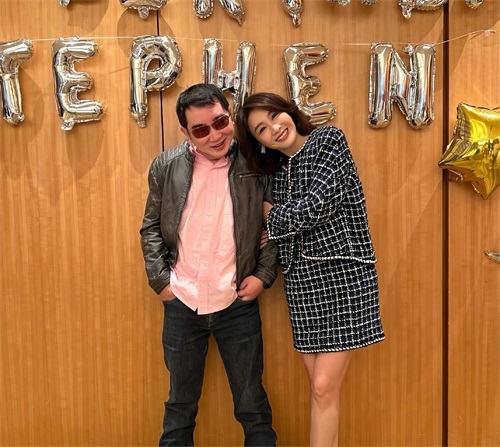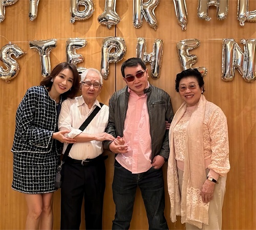 照片中,一家人为黎婴庆祝48岁生日。罕见现身的黎婴穿着一件粉色衬衣加皮外套,再搭配牛仔裤和运动鞋。脸上依旧还是戴着墨镜,看不到他的眼睛。