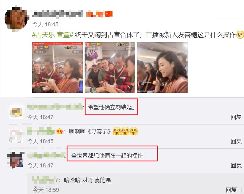 但直播中除了宣传电影《犯罪现场》以外,现场还出现了一个小插曲。有一对结婚的新人,特地向两人发喜糖,画面甜蜜温馨,但由于古天乐与宣萱至今未婚,加上戏里又是那么地恩爱,因此不管是现场的观众还是网友,都有意地对两人开启催婚模式,内心底都极希望他们可以真正在一起。