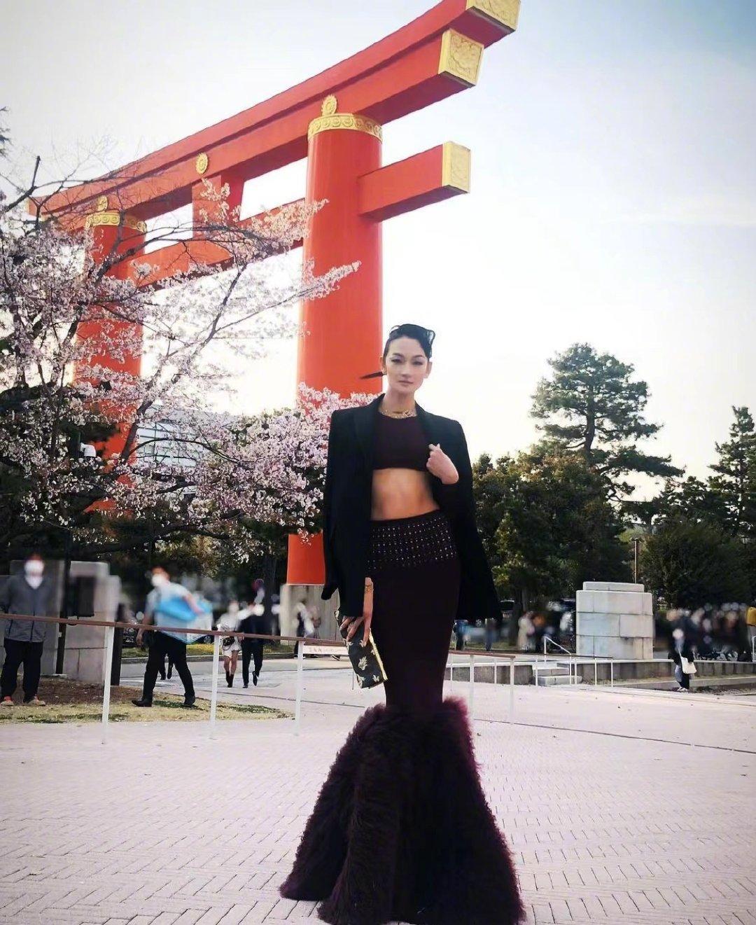 在室外的时候,富永爱在外面随性披了一件黑色的西装外套,优雅大气。手拿包增添精致度和时尚感,举手投足间都是超模范儿。