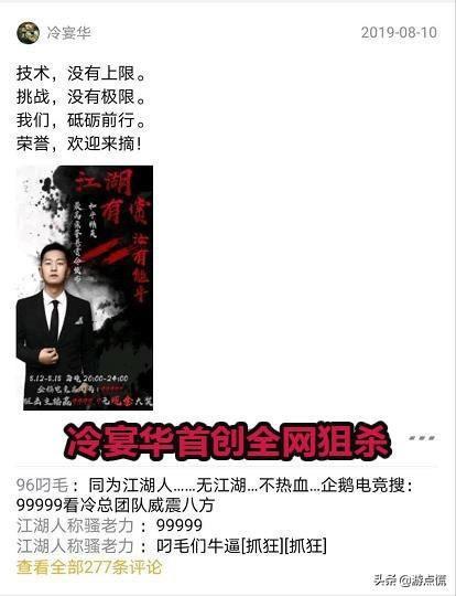 冷宴华战神分段开启“全网狙杀”,此前曾被不求人坦然抄袭