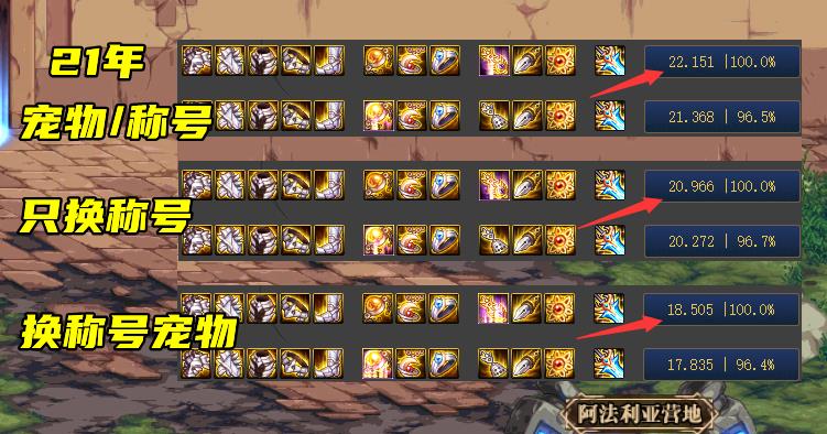 其实如果仅相差5%的话,还勉强可以接受,而往往实际情况是这样的,如果某玩家佩戴的是“龙挑”,那么他的宠物多半也是17年的克里斯,而如果同时更换称号和宠物,伤害就只剩下了18.5亿,下降确实约为19.7%,这就是质变了!