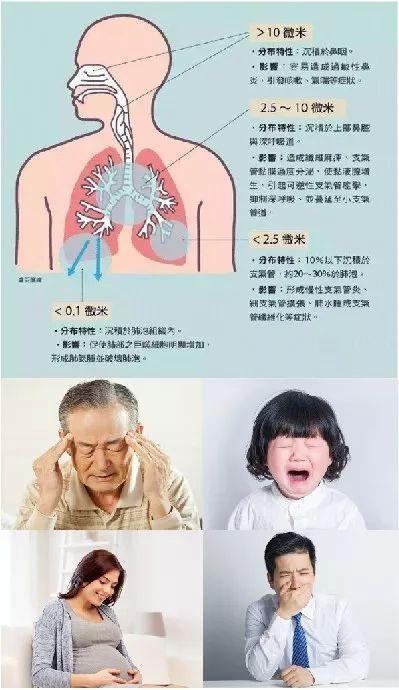 而PM2.5通过呼吸可以到达肺部,颗粒物在肺泡上沉积会干扰肺部的气体交换,损伤肺泡和粘膜,引起肺组织的慢性纤维化,导致肺心病,加重哮喘病,引起慢性鼻咽炎、慢性支气管炎等一系列病变。这些颗粒物还可以通过支气管和肺泡进入血液,若有害气体、重金属等溶解在血液中,严重的话会危及生命,尤其是对儿童和老年人危害更大。