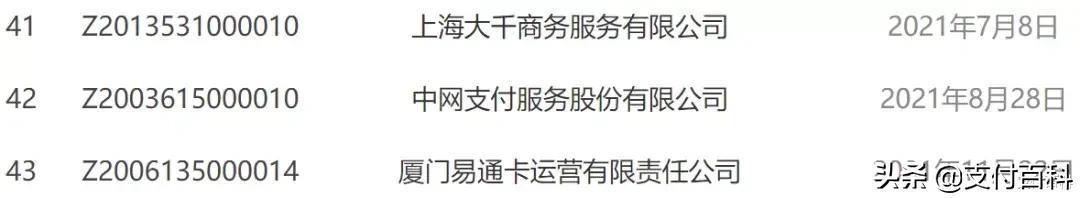 今日,「支付百科」注意到,央行官网更新了支付牌照注销名单, 厦门易通卡运营有限责任公司支付牌照被注销,成为第43张被注销的支付牌照,而厦门易通卡运营有限责任公司正是这批51家续展机构之一。