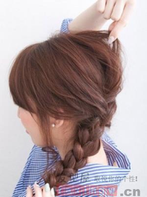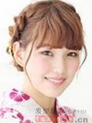 如果你觉得披散着头发很闷热,那就来试试这款棕红色系的齐刘海的编发盘发造型吧,圆润饱满的笑脸,清爽修颜更好看。