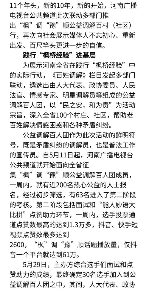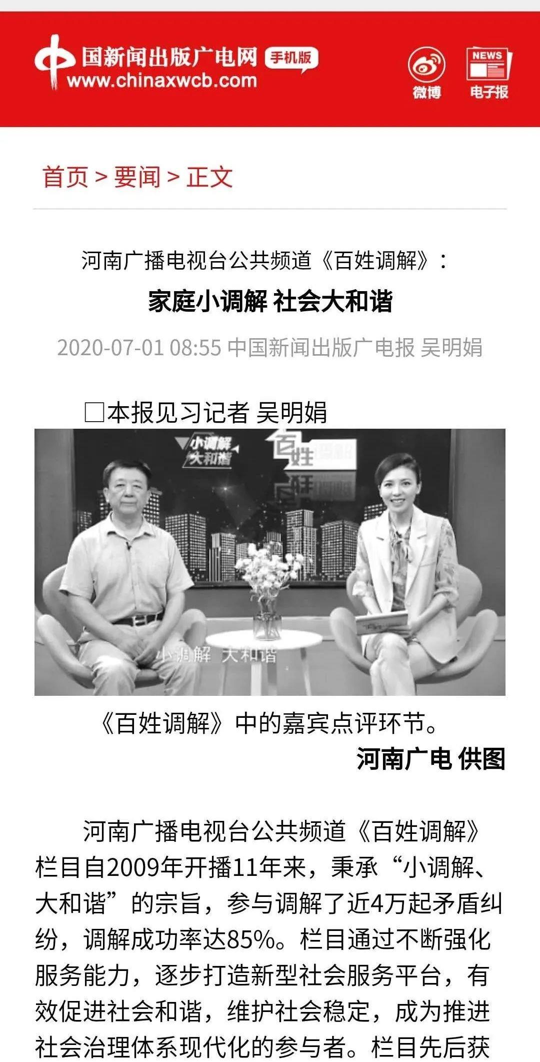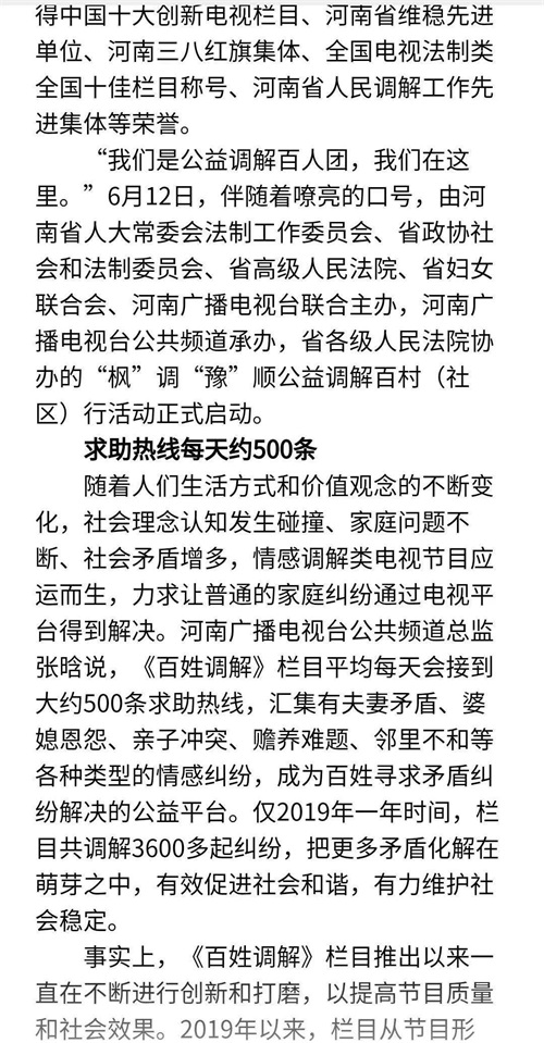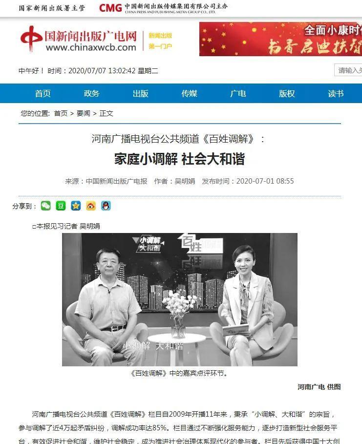 对河南广播电视台《百姓调解》栏目进行报道