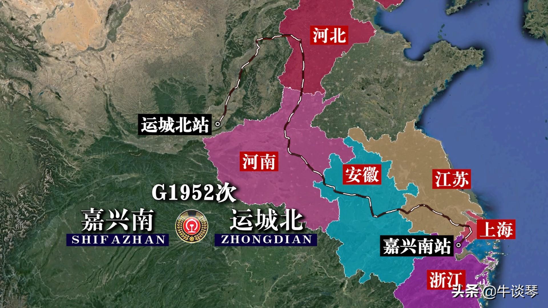 G1952次列车运行线路图:嘉兴南开往运城北,全程2070公里