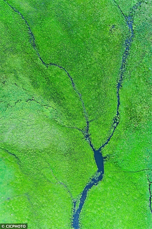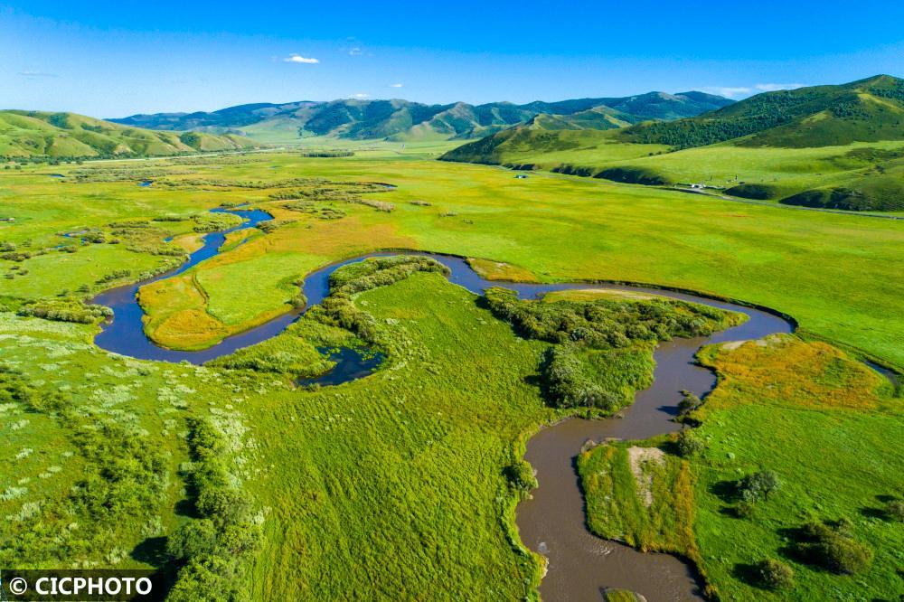 ↑2022年8月15日,内蒙古自治区兴安盟科尔沁右翼前旗,乌兰毛都草原景致如画。(无人机照片)CICPHOTO/王正 摄