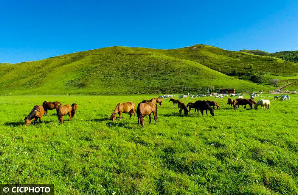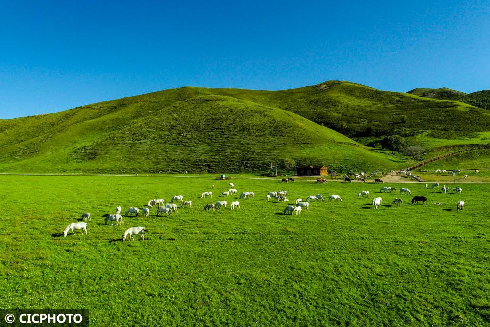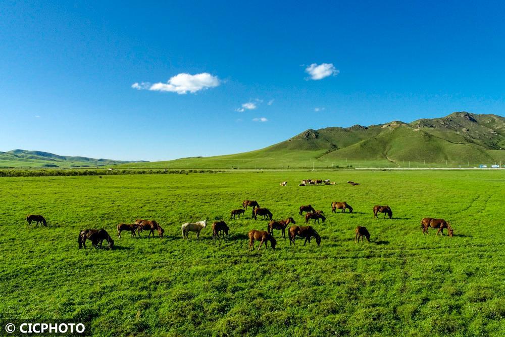 夏末初秋时节,位于内蒙古自治区兴安盟科尔沁右翼前旗的乌兰毛都草原绿草如茵,与蓝天、白云、山峦、河流、马群共同构成一幅幅美丽的自然生态画卷。