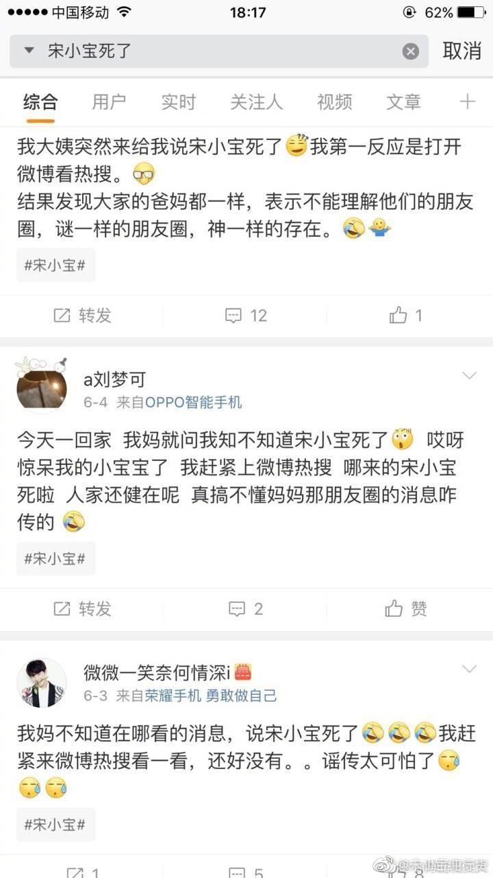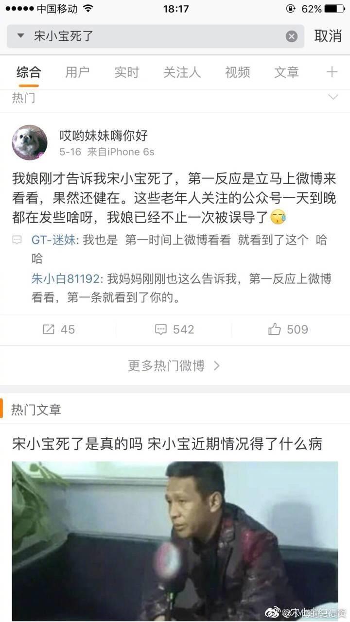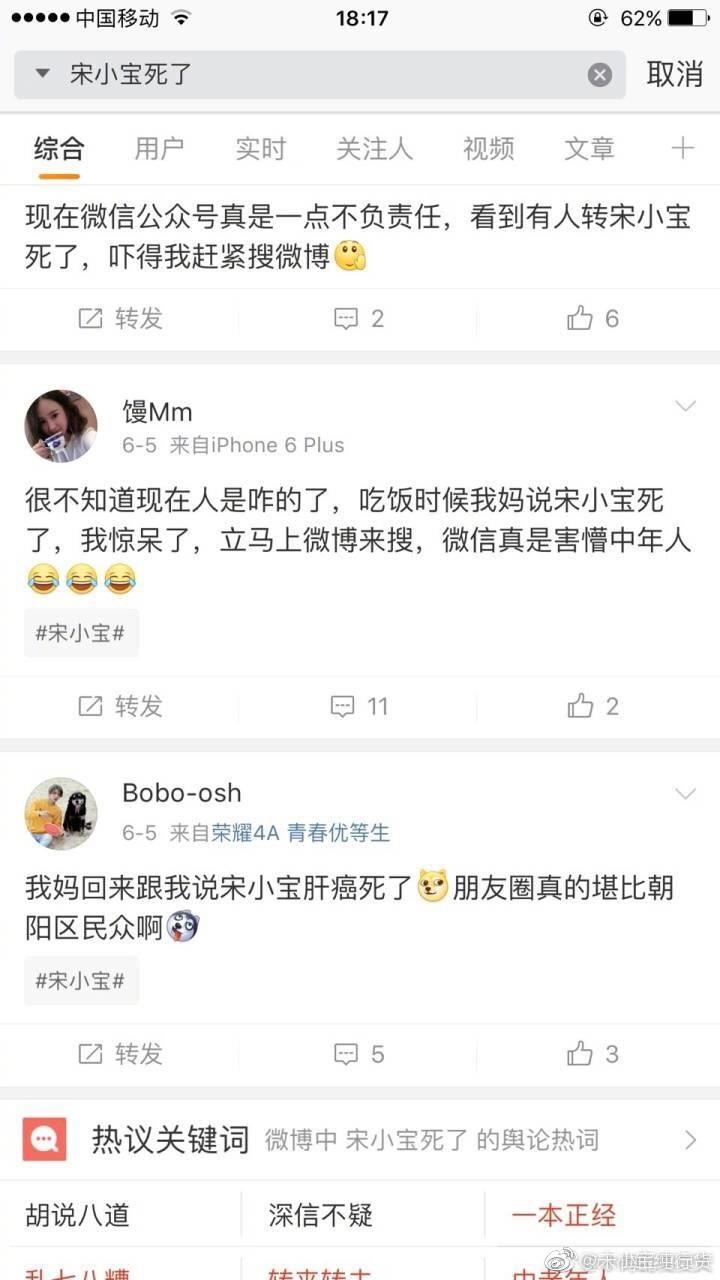 确实去年宋小宝很少活动,也说过自己的肝出现了问题,但是这样的谣言未免太过伤人。谣言的源头是朋友圈公众号的文章。