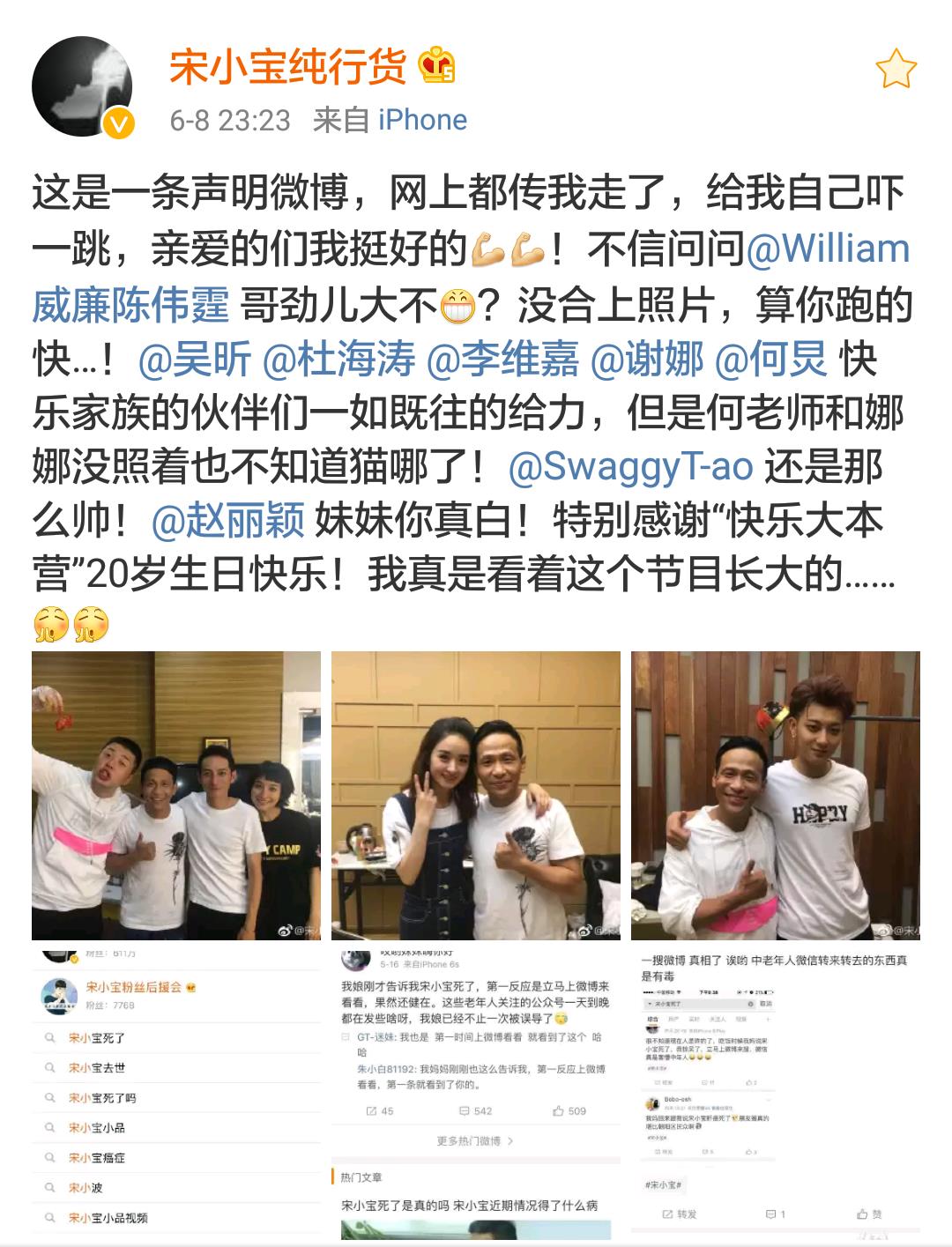 宋小宝被传去世发声明,拉来黄子韬陈伟霆作证,顺便夸夸赵丽颖!