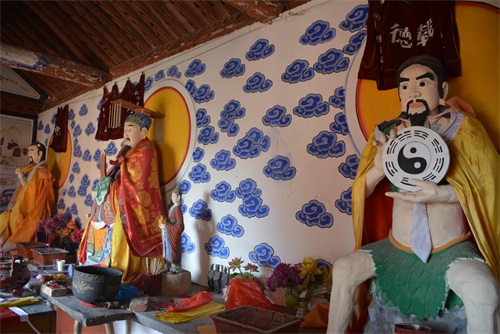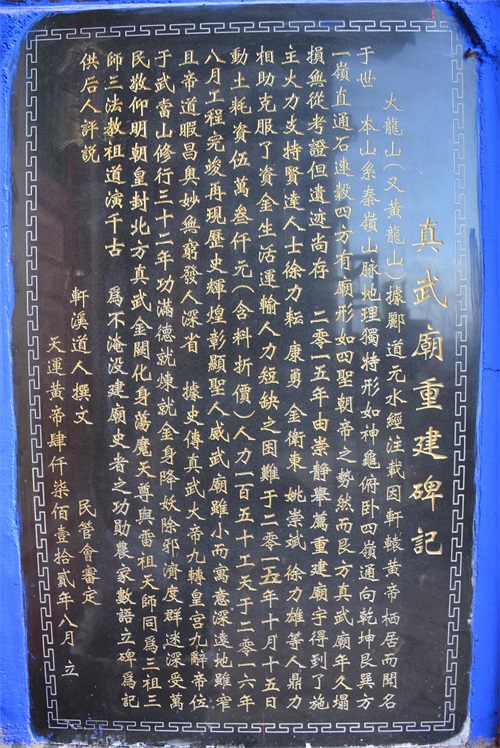 黄龙山山巅修建有儒释道三教合一的建筑群,真武观、三皇庙、菩萨庙就建在峰巅三个峰头之上,在天水极为罕见。真武观,又称无量寺,坐东北面朝西南,建筑占地30平方米。殿内塑无量祖师坐像,披发仗剑,神态威仪。殿内两侧墙壁上均绘制壁画,内容为无量祖师出宫别六院、武当山修行、功到自然成、功满德就等神话故事。殿前廊左右立有《真武庙重建碑记》《重建真武庙功勋碑》两块石碑,均嵌于墙壁之内。据轩溪道人撰《真武庙重建碑记》记载:“大龙(王)山,又(称)黄龙山。据郦道元《水经注》载:因轩辕黄帝栖居而闻名于世。本山系秦岭山脉,地理独特,形如神龟俯卧。四岭通向乾坤艮巽方,一岭直通石莲谷。四方有庙形,如四圣朝帝之势。然而艮方真武庙年久塌损,无从考证,但遗迹尚存。”2015年,地方人士徐力耘、康勇等捐资,地方民众投工重建庙宇,农历十月十五日动工,耗资5.3万元,于次年农历八月工程竣工。