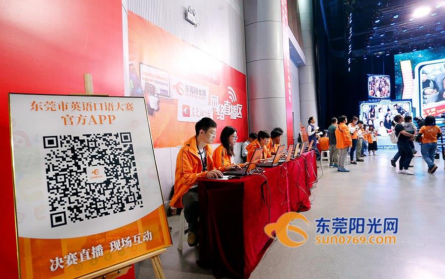 东莞阳光网工作人员在英语口语大赛活动现场忙碌地进行直播。