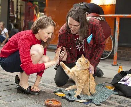 在自己最困难,最落魄的时候,遇到了同样受伤被遗弃的鲍勃猫,从此人猫相依为命。