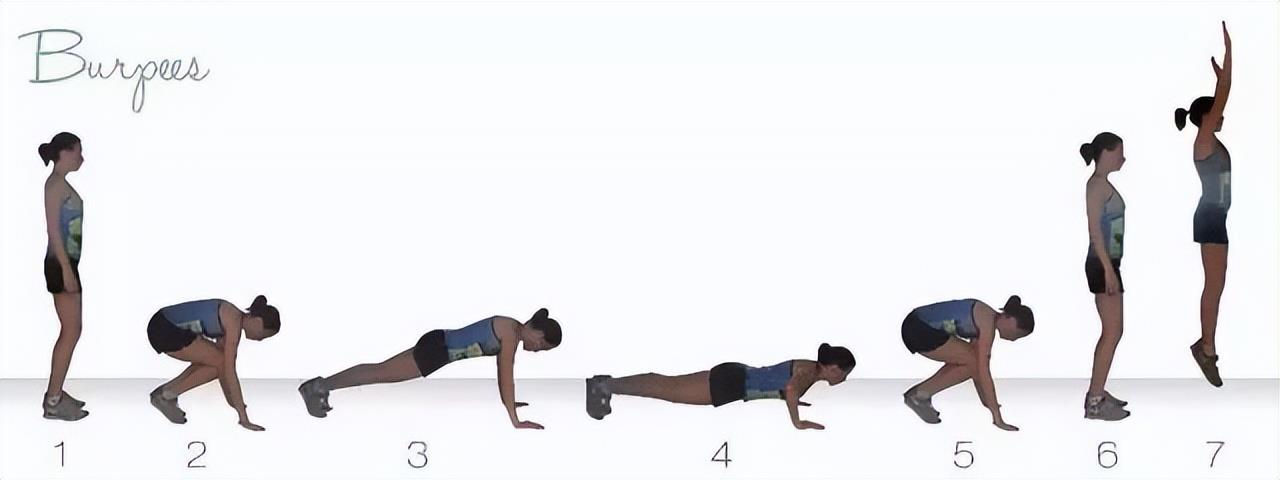 最开始,这个动作和平板支撑比较类似,基本上就是直立 - 平板支撑 - 站起来,既不需要你做俯卧撑,也不需要跳起来击掌。但在那个年代,很多人觉得这个动作运动量太大,所以不会选择去做它。