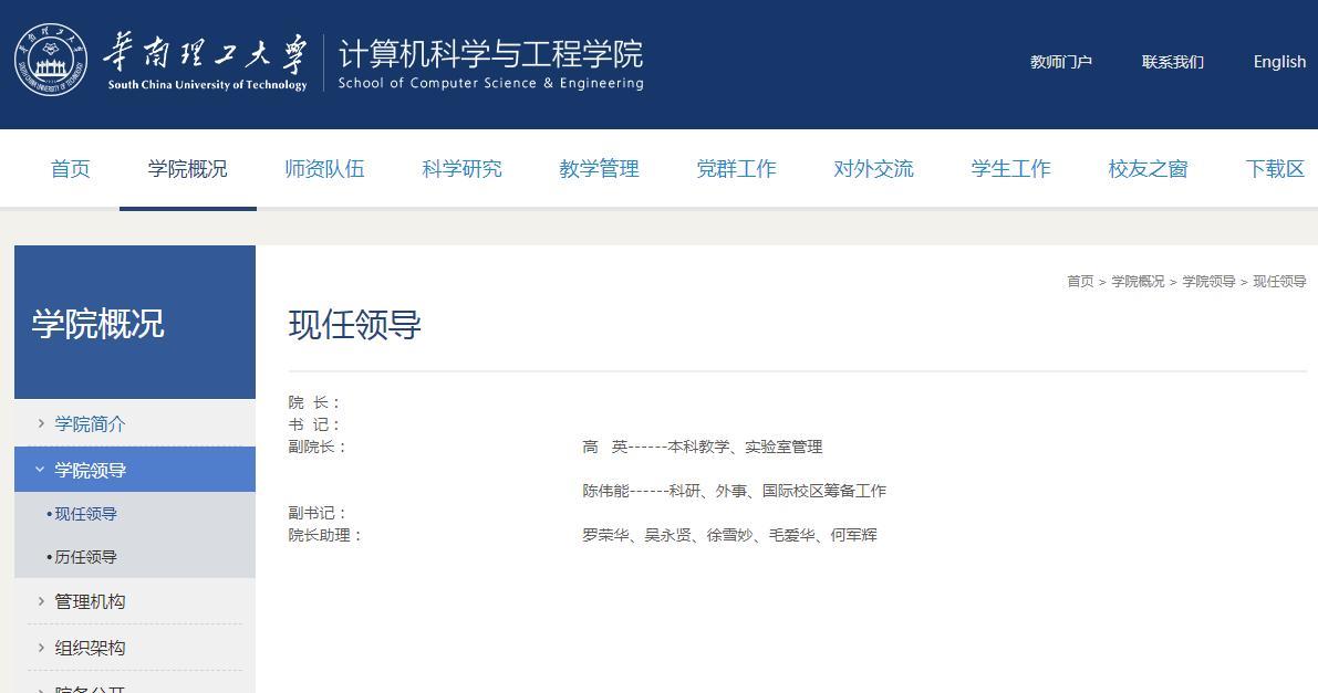 官网学院网页现任领导院长、书记一栏已显示空缺