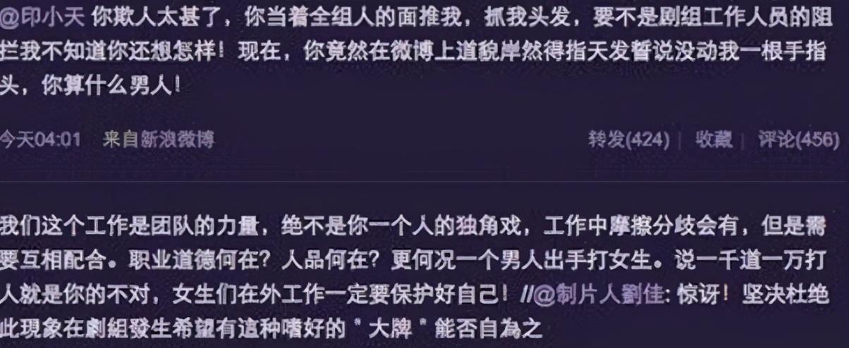 随着舆论的发酵,此时的印小天已经名誉受损,被冠上了“打女人”“耍大牌”的罪名,真是有苦说不出了。