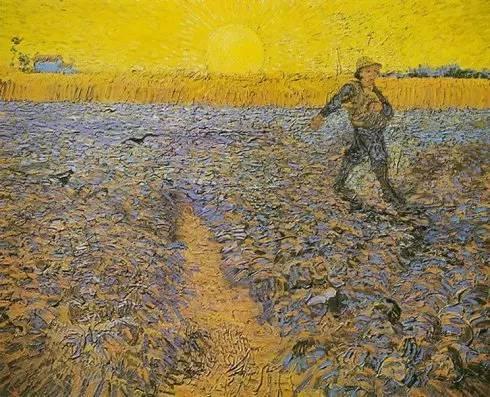 但如果告诉你,在《圣经》中有一个桥段:耶稣布道时,用麦田和种子做比喻向人们描述天堂的样子播种者象征着上帝,然后联系早期绘画的作用是向不识字的民众传播宗教信仰这一背景,再看这幅画,是否能有不一样的感觉呢?