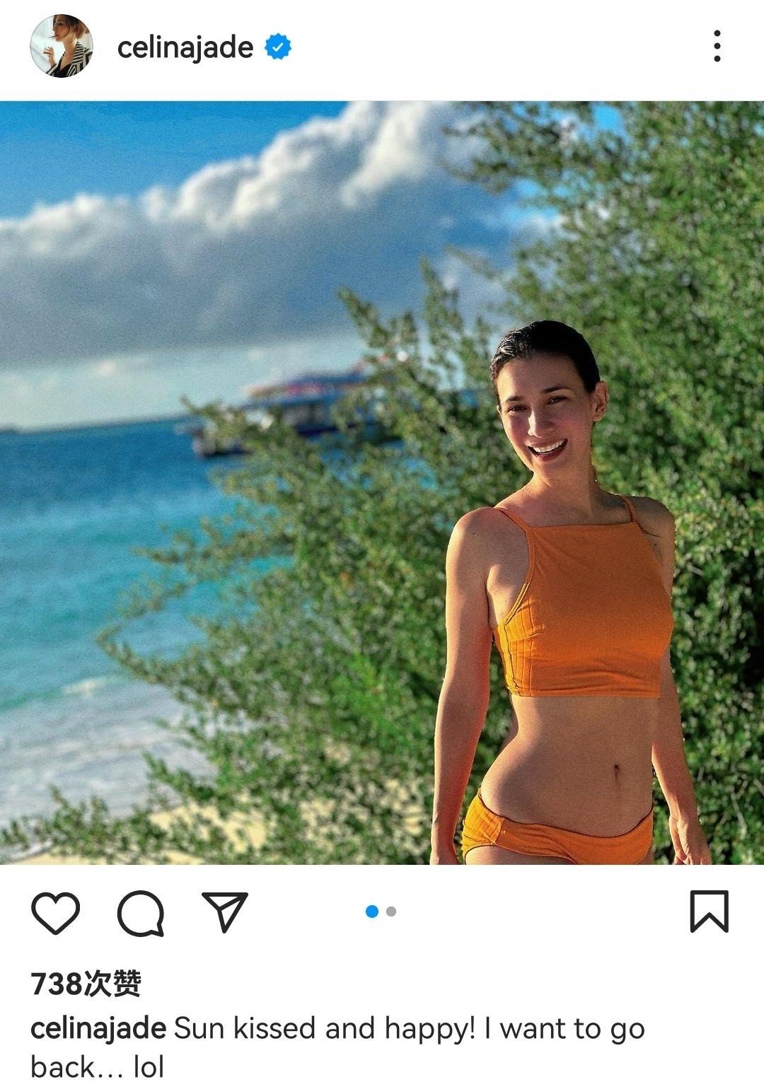 除此之外,还有卢靖姗穿着比基尼大秀身材的美照。