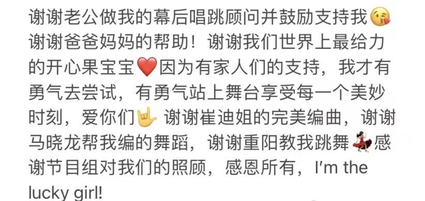 刚生完宝宝半年就参加了《乘风破浪》,不俗的唱功和精彩的表演为她赢来了掌声。