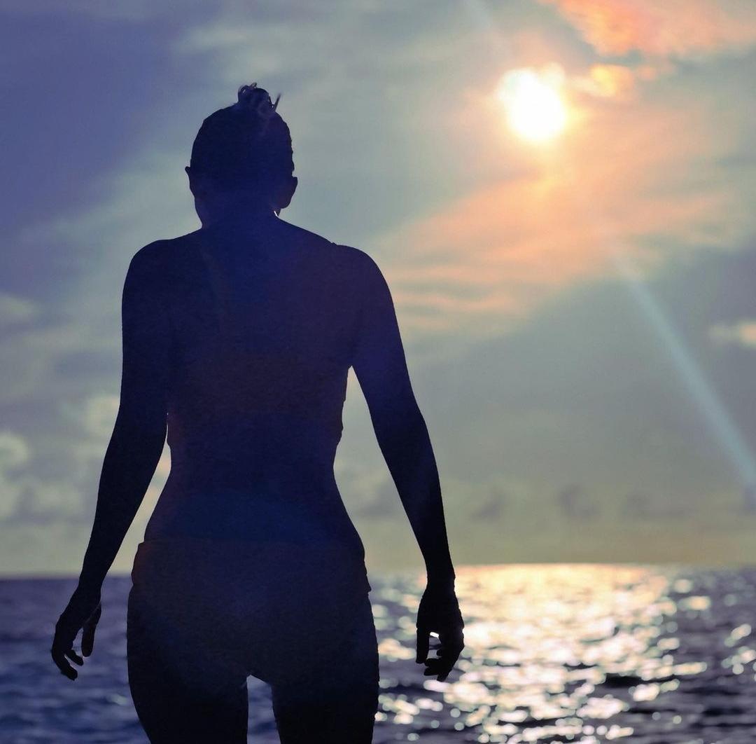 卢靖姗晒马尔代夫度假照,韩庚从背后将其环腰抱,小姨子也同行