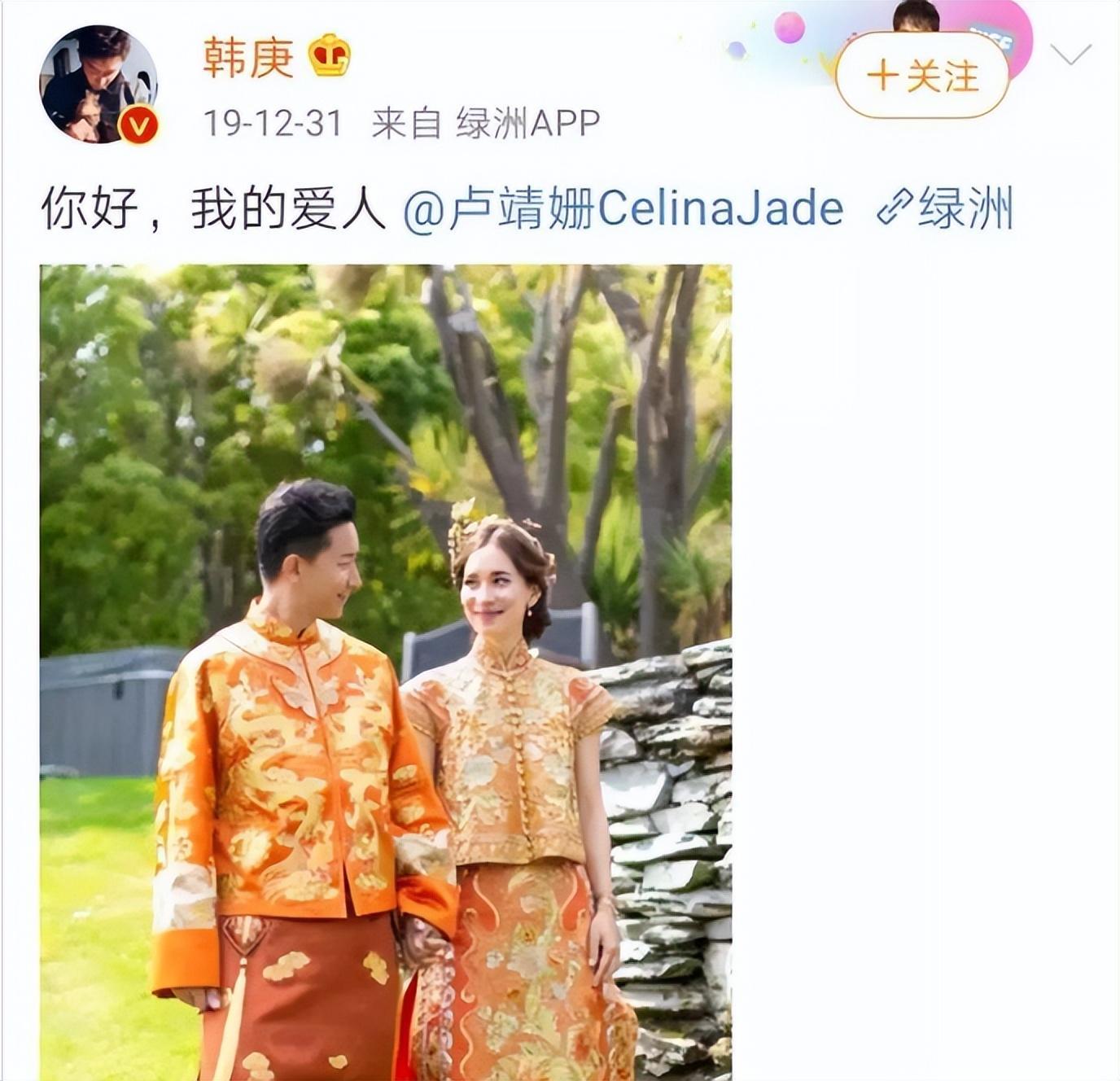 8月14号,卢靖姗在社交平台发出了自己和韩庚的合照,