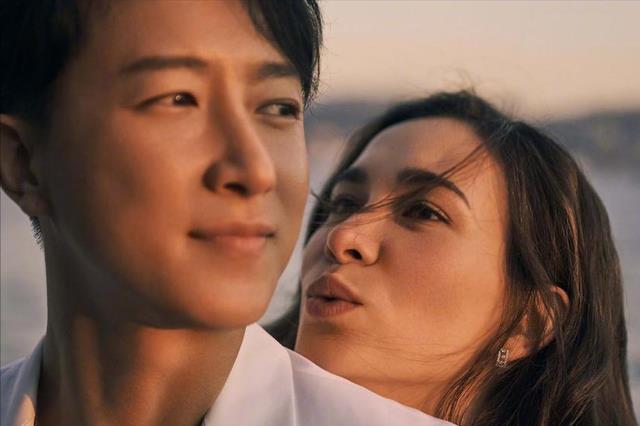 绚烂的天,蔚蓝的水,还有微笑着紧握双手的两人。