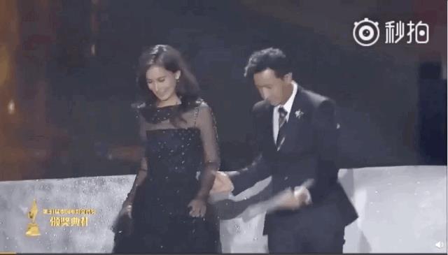 一次颁奖典礼,韩庚和卢靖姗同为“最佳音乐奖”的获奖影片颁奖,下台时,韩庚绅士的扶着卢靖姗下台。