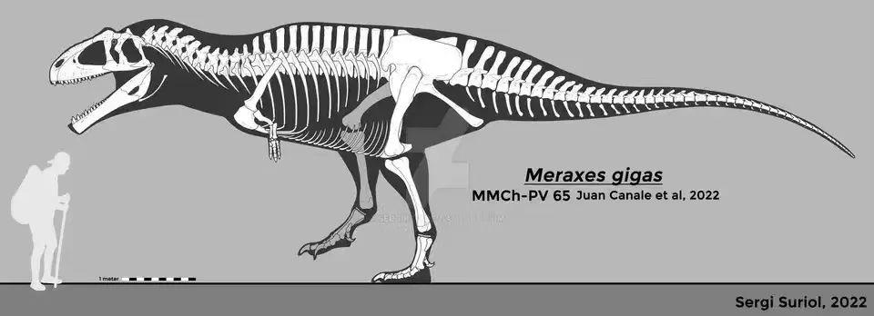 论文:Canale, J.I.; Apesteguía, S.; Gallina, P.A.; Mitchell, J.; Smith, N.D.; Cullen, T.M.; Shinya, A.; Haluza, A.; Gianechini, F.A.; Makovicky, P.J. (7 July 2022). "New giant carnivorous dinosaur reveals convergent evolutionary trends in theropod arm reduction". Current Biology.