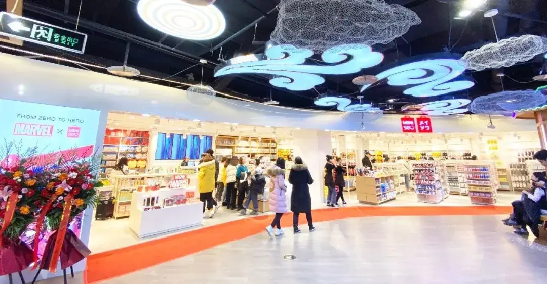 名创优品位于德化新街负二层西栅,店面建筑面积500多平方米,是目前郑州最大的一个店,陈列的产品更多更全,还有很多漫威、米奇米妮、冰雪奇缘等IP系列产品。
