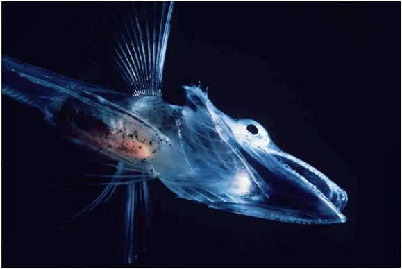 南极冰鱼也叫鳄冰鱼,是一种辐鳍鱼纲鲈形目的鱼类。南极冰鱼的下属种类很多,但它们都有一个共同的特点,那就是抗寒能力一流。其实在很早之前,就有科研考察队发现了这种神奇的鱼类,但他们当时只是惊叹于它们的抗寒能力,并没有深入了解南极冰鱼的习性。南极冰鱼主要生活在南极零度以下的无污染深海中,它们的长相非常奇特,脑袋大尾巴小,嘴巴向前突出,里面长有尖牙,就像鳄鱼一样,鳄冰鱼的名字也来源于此。南极冰鱼身上并没有鳞片,取而代之的是光滑的皮肤。你可能很难想象,南极冰鱼的身体是半透明色的,身上还有一些奇特的花纹,这些花纹只在南极冰鱼身上出现过,它们无疑是一种人类并不了解的神秘生物。
