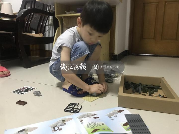 打开记者带去的乐高,墨墨迫不及待玩了起来。玩的过程中,孩子双手不时去挠屁股。
