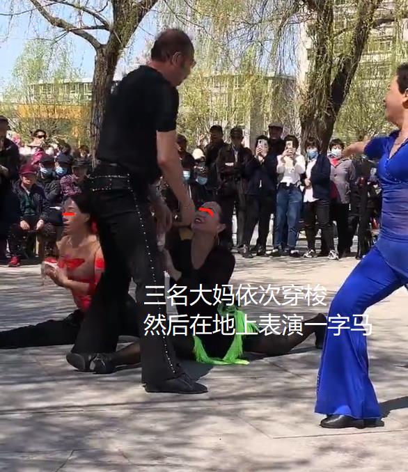 仨大妈与一名大爷热情跳舞,依次在大爷胯下穿梭,动作娴熟引争议